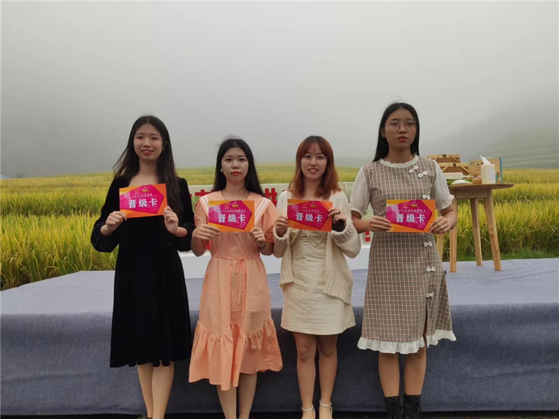 9月21至23日,商学院电子商务教研室负责人钟蕾蕾和教师谢姝君带领学院13名学生赴崇义县上堡乡参加全国首届网络主播大赛——《我是带货王》上堡梯田海选赛。预选阶段共有90余名选手参加。