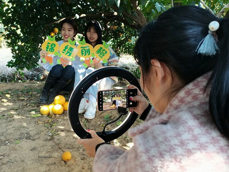 电商教研室教师们为此次直播活动提前与当地企业积极沟通,多次考察。从横幅手持牌设计、彩旗定制、学生直播脚本编排,到抖音流量权重等各方面,全体老师做了为期3周的精心策划,从而保证了此次教学实践活动的顺利进行。学生们一整天在脐橙园里摘脐橙,拍视频,做直播,不怕苦、不怕累的精神状态充分展示出我院电商专业学生极高的职业素养和精神风貌。活动结束后,当地企业负责人表示,感谢学院开展的电商扶贫活动,为当地拓宽脐橙的流通和销售渠道提供了新的思路。