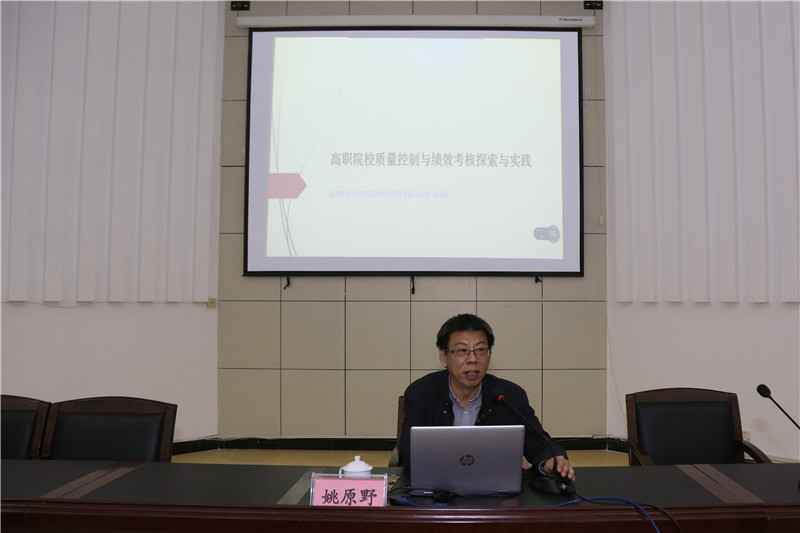 姚原野教授以《高职院校质量控制与绩效考核探索与实践》为专题,从“高职教育质量发展、诊改制度建设从管理走向治理、淄博职院质量管理机制与绩效考核的探索实践、质量管理与绩效考核信息化探索实践、淄博职院诊改工作情况”五方面讲述了质量管理与绩效机制的建立方法以及信息化建设思路。