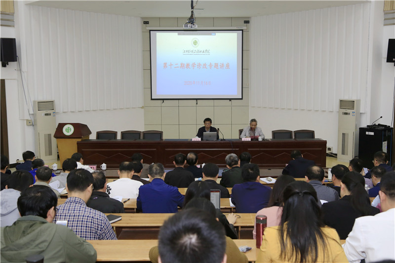 11 月 16 日上午,学院在学术报告厅举办了第十二期教学诊改专题培训,培训由淄博职业学院质量考核办公室主任姚原野教授主讲。学院领导宋墩福、曾东东、张孝金、叶超飞、彭宗迁、吉登星、董新春和学院副科级以上干部、各专业和课程教研室主任、教师代表等200 多人参加培训。