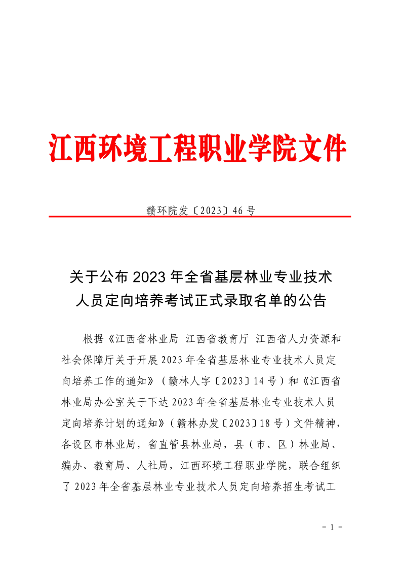 关于公布2023年全省基层林业专业技术人员定向培养考试正式录取名单的公告