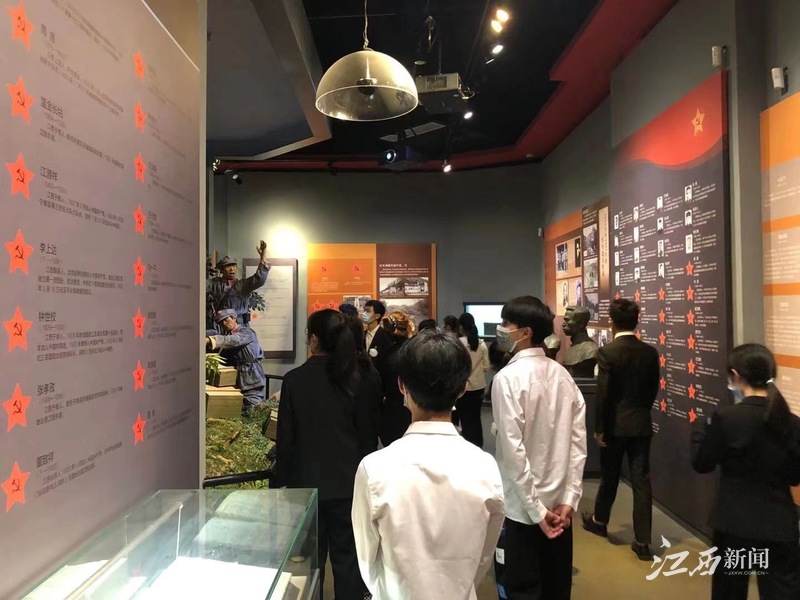 “1929年2月,作为朱德妻子的伍若兰和红军部队途径赣州寻乌时遭到国民党部队的包围偷袭,伍若兰和警卫连战士一起拼死掩护部队撤退,为了保护军部首长,她将敌人的火力引向自己,掩护时腿部中弹受伤,趴在地上还在阻击敌人,终因寡不敌众而被俘虏……”仪式结束后,同学们参观了赣南革命烈士纪念馆,场馆工作人员向同学们讲述了伍若兰等革命烈士的感人事迹。