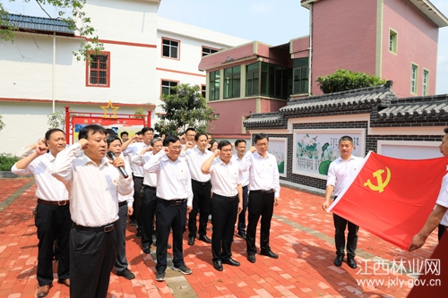 在庄严的油山革命烈士纪念碑前,参加仪式的党员肃穆站立,向烈士默哀鞠躬,向烈士敬献花篮,全体党员依次绕行革命烈士纪念碑,向烈士致以无限敬仰和深切缅怀。随后,党员们先后来到油山赣粤边三年游击战争纪念馆、中共赣粤边特委暨赣南特委机关旧址、陈毅疗伤处等革命旧址瞻仰,并重温了入党誓词。