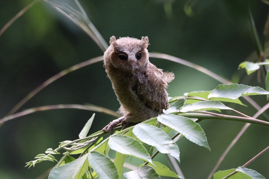 5月1日晚,遂川县林业局野保工作人员接到泉江镇村民电话,称有一只像猫头鹰的怪鸟闯进自家院中,因平时少见不敢贸然驱赶,请求遂川县林业局派人前往处置。随后野保人员到现场成功捕捉该鸟并带回,经过鉴定,该鸟为领角鸮。鉴于这只领角鸮为刚离巢幼鸟,飞行及捕食能力相对较差,5月2日,遂川林业局将领角鸮转交至江西环境工程职业学院科研处教师钟平华,希望钟平华帮助领角鸮开展适应性的救助与训练。经过一周的精心救治和护养,这只领角鸮已达到野外生存能力,并于5月8日成功放飞野外。