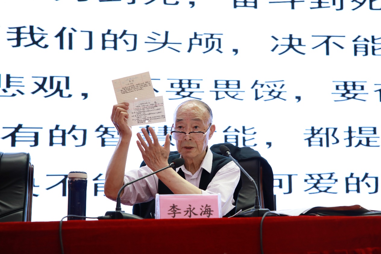 李永海从“努力提升对党史学习教育重要性的认识、自身永远不能忘怀的一些历史记忆、把握好自己的学习和行动”三个方面为师生讲党史、话初心。李永海以自身经历为引,讲述了自己从一个放羊娃成长为新中国建设者一员的奋斗历程,他勉励师生“路永远在脚下,志永远在远方”,要吃苦耐劳、努力奋斗,做一个有志向的充满激情的人,立志毕生为“初心”和“使命”而拼搏、奋斗、斗争不息!