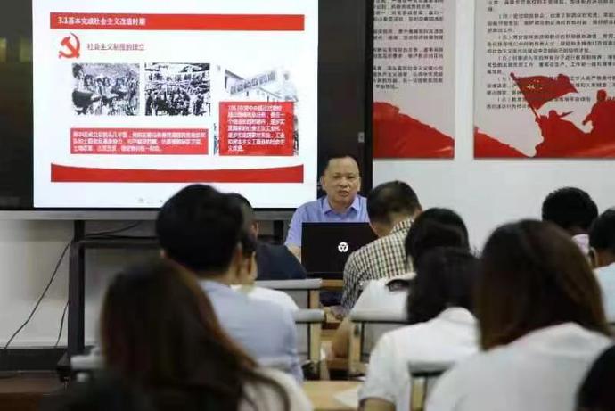 在班级辅导员之外,学校为每个班级聘任了一名政治素养高、管理经验丰富的教师党员,协助班级辅导员做好学生的思想政治工作,依托政治辅导员,线下教育覆盖全体在校学生。党史学习教育开展以来,该院党委书记肖忠优、院长熊起明带头到联系班级开展政治辅导,依托马克思主义学院统一制作的课件,到班级开展党史学习教育五本指定书目的内容宣讲,同时督促班级同学完成“同上‘四史’思政大课堂”网络思政课的学习。