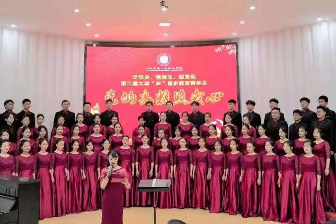 在通识教育课程和专业课程中,学校教师梳理挖掘专业行业发展过程中重要人物、杰出人物的性格特征和精神世界。在教学过程中,注重引导学生正确认识党的历史上的重要人物、重大事件与时代的关系,了解历史发展规律,实现人文价值引领,引导学生树立正确的党史观、文化观和价值观。其中,旅游与外语学院《声乐》课程教学过程中,创新开展了“党的光辉照我心”为主题的专场合唱音乐会,做到党史学习教育融入通识教育和专业课程教学。