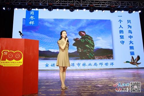 10位宣讲人声情并茂地讲述了江西农业大学原副校长、博士生导师杜天真教授,中国最美林场——金盆山林场集体,全国劳模、龙虎山生态护林员肖冬样,做赣南油茶科技推广的有心人——刘蕾,江西省元宝山农业发展有限公司董事长佘贻谋,中国最美生态护林员蓝先华,最美森林医生刘春兰,鄱阳湖国家级自然保护区集体,江西省油茶知名专家龚春,江西环境工程职业学院集体10个“最美林业人”的动人事迹。