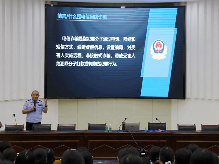 “天上不会掉馅饼的,对于‘轻松日赚上万’这样的网络信息,做到不听、不信、不转账。”“刷单是违法的!国家法律法规、电商平台均明令禁止这种虚假交易。”“一旦发现被骗,第一时间拨打赣州市反诈中心全国统一反诈专线96110”。讲座中,刘杰臻以风趣幽默的语言、具体详实的案例为同学们讲解了什么是电信网络诈骗,对当前全国及赣州市电信网络诈骗案件发案形势进行了分析,并向同学们科普了大学生应知应会的防范诈骗相关知识。