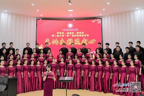 学前教育专业声乐教师黄娟、金京峰带领大学生合唱团以“党的光辉照我心”为主题,通过星火燎原、奋发图强、改革创新、不忘初心四个篇章15首经典红色歌曲,将音乐和党史学习教育相结合,以音乐感悟党史,用歌声铭记初心,引导大家在歌声中学习中国共产党在国家危难之际诞生、挫折后毅然奋起、转折中开创新局、奋斗后赢得未来的辉煌百年历程。