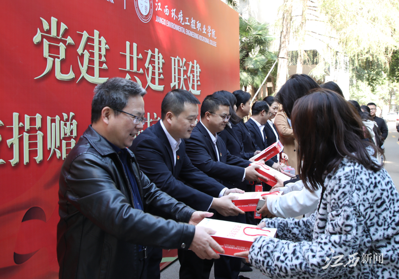 江西新闻客户端讯 (肖小华、肖朕) “同学们,急救包里有口罩、酒精湿巾、免洗手消毒凝胶、碘伏棉签等防疫用品,希望大家做好个人日常防护,保障自身安全健康。”11月11日,江西环境工程职业学院联合赣州农商银行开发区中心支行在学院开展党建、共建、联建公益捐赠活动,为师生发放了500份“百福抗疫急救包”,助力学院常态化疫情防控。