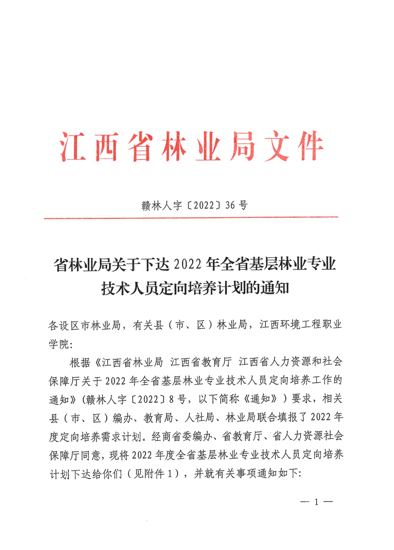关于下达2022年全省基层林业专业技术人员定向培养计划的通知