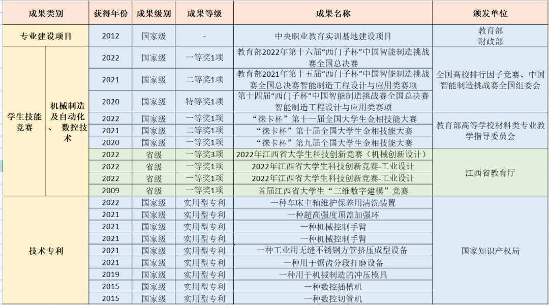 现有专任教师15人,具有中高级职称、机械工程师或高级技师的教师占90%,毕业于重庆大学、华中科技大学、东北林业大学等院校且具有硕士研究生学历教师13人、本科学历教师2人,获得江西省人民政府高技能人才、江西省首席技师等荣誉称号10项,被市级以上政府部门、大赛组委会、行业协会聘为世界职业院校技能大赛增材制造技术赛项裁判成员等专家的教师8人,承担同行、企业的专业建设、技术培训、技能竞赛等工作。