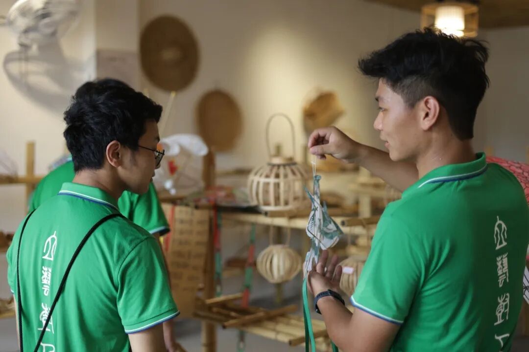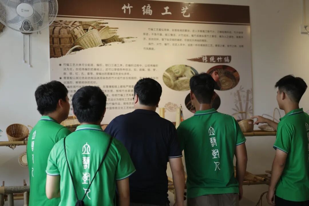 在竹编体验馆中,实践队员们了解到园村在竹编工艺,如手工竹编九狮拜象、竹编茶篓、竹编礼篮等方面也有着悠久的历史传承。每一件竹编作品都承载着编织者的心血与智慧,从设计到制作,每个环节都需要反复琢磨与实践。通过不同的编织手法,可以创造出千姿百态的艺术作品,既有实用性又具观赏性。这种由工匠精心编织而成的手工艺品,具有独特的文化价值和艺术价值,令人爱不释手。