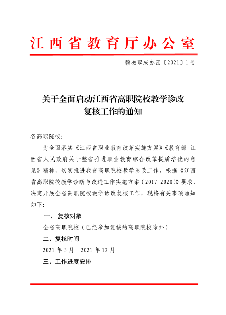 赣教职成办函〔2021〕1号:关于全面启动江西省高职院校教学诊改复核工作的通知 来源: 发布时间:2021-01-20 16:13:09 浏览次数: 次 【字体:小 大】 终审:教学质量研究中心 分享到: 【打印正文】