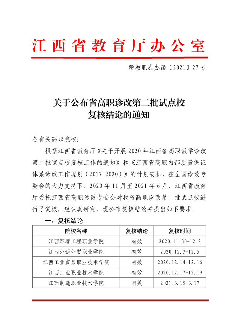 赣教职成办函〔2021〕27号:关于公布省高职教学诊改第二批试点校复核结论的通知 来源: 发布时间:2021-11-20 22:31:38 浏览次数: 次 【字体:小 大】 终审:教学质量研究中心 分享到: 【打印正文】